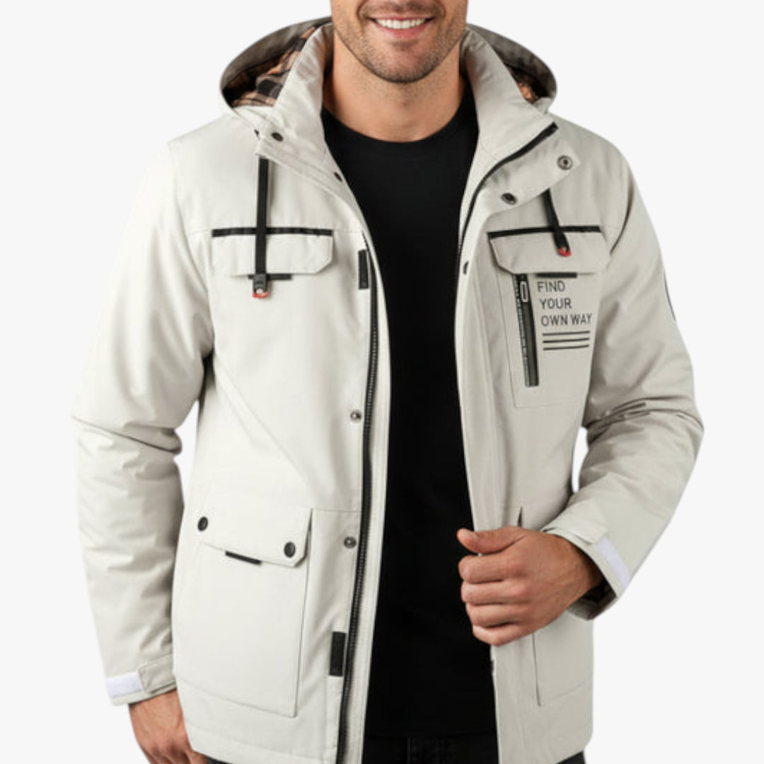 Herren Winterjacke mit Kapuze und Reißverschlusstasche